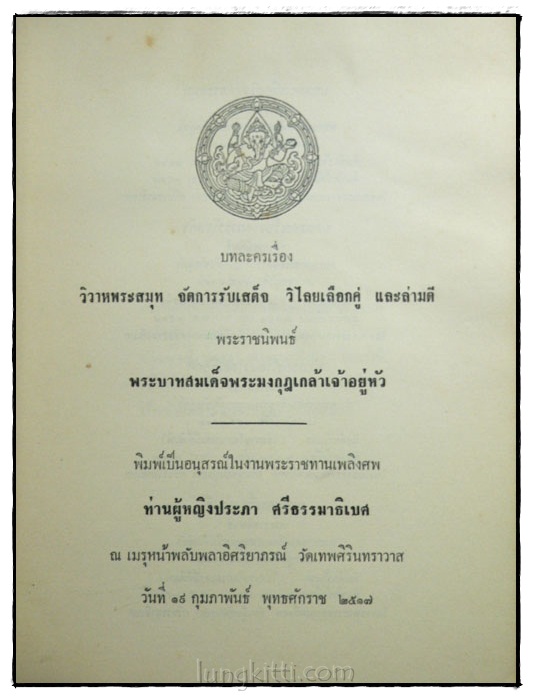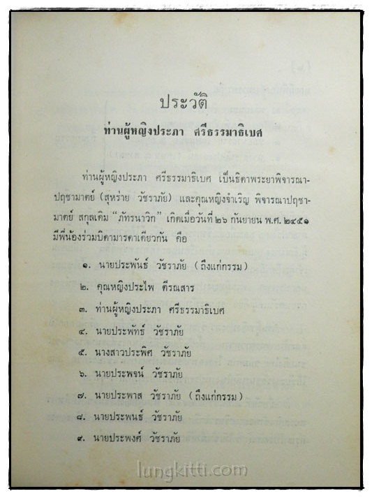รายละเอียดสินค้า อนุสรณ์ในงานพระราชทานเพลิงศพ ท่านผู้หญิงประภา ศรีธรรมาธิเบศ
