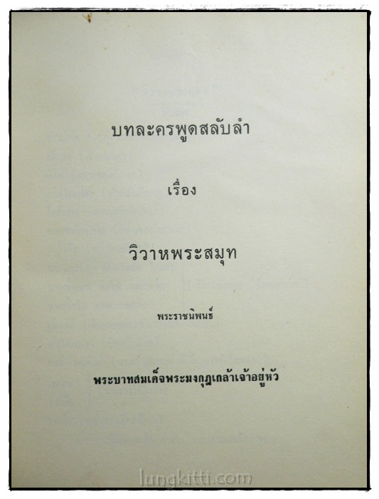 อนุสรณ์ในงานพระราชทานเพลิงศพ ท่านผู้หญิงประภา ศรีธรรมาธิเบศ ณ เมรุหน้าพลับพลาอิศริยาภรณ์ วัดเทพศิรินทราวาส วันที่ 19 กุมภาพันธ์ พ.ศ. 2517 เนื้อหาภายในเล่มส่วนแรกเป็นชีวประวัติของท่านผู้หญิงประภา ศรีธรรมาธิเบศ ส่วนที่ 2 ได้จัดพิมพ์เรื่อง วิวาหพระสมุท จัดการรับเสด็จ วิไลยเลือกคู่และล่ามดี พระราชนิพนธ์ พระบาทสมเด็จพระมงกุฎเกล้าเจ้าอยู่หัว มาจัดพิมพ์ในครั้งนี้ หมวด (03) : หนังสืออนุสรณ์งานศพ ปกอ่อน / 250 หน้า จัดพิมพ์: โรงพิมพ์ตีรณสาร พิมพ์ครั้งที่ :3 ปีที่พิมพ์ : 2517 ขนาด : กว้าง 16.5 ซ.ม.ยาว 21 ซ.ม. สภาพ :พอใช้ / กระดาษมีคราบเหลือง ![]() ![]() ![]() ![]() ![]() ![]() ![]() ![]() ![]() |