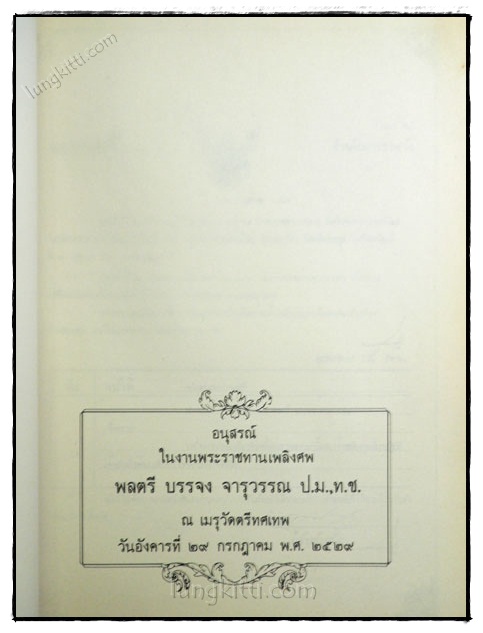 รายละเอียดสินค้า อนุสรณ์ในงานพระราชทานเพลิงศพ พลตรี บรรจง จารุวรรณ