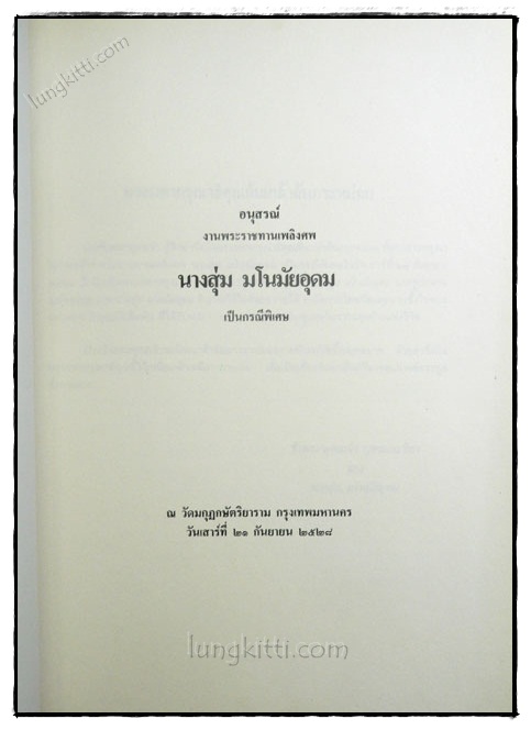 รายละเอียดสินค้า อนุสรณ์ในงานพระราชทานเพลิงศพ นางสุ่ม มโนมัยอุดม (เป็นกรณีพิเศษ)